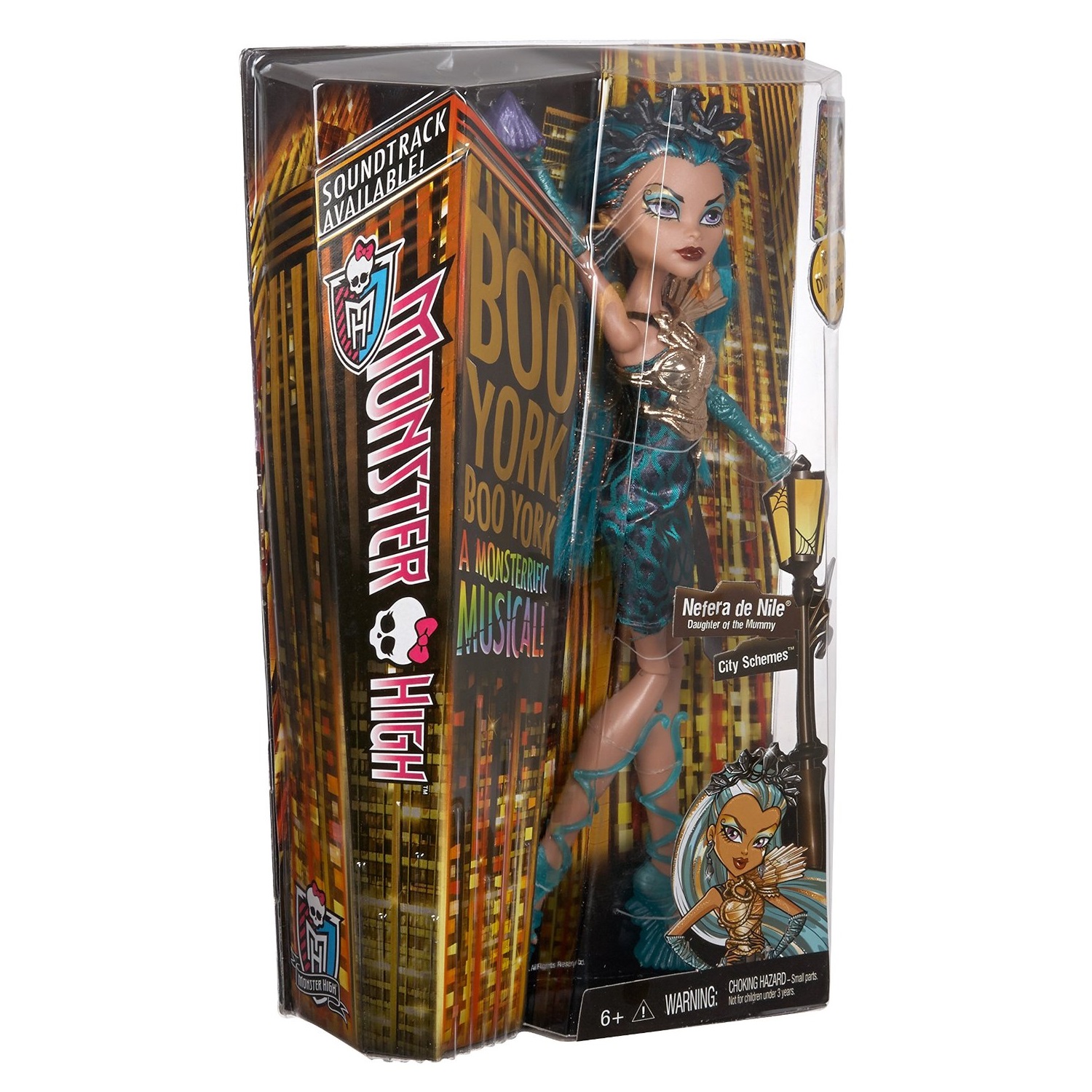 In the shimmering streets of Boo York, where dazzling lights meet the ancient whispers of time, emerges a vision of elegance and mystery: the Nefera de Nile Doll from the Boo York Series, Monster High. This captivating figure gracefully bridges the millennia, embodying the transcendental allure of a bygone era mingled with the vibrant pulse of metropolitan night's glamour.